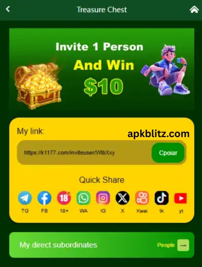 Users can earn extra money by inviting friends. When friends join using your code, you get a bonus. This is an easy way to earn without playing.