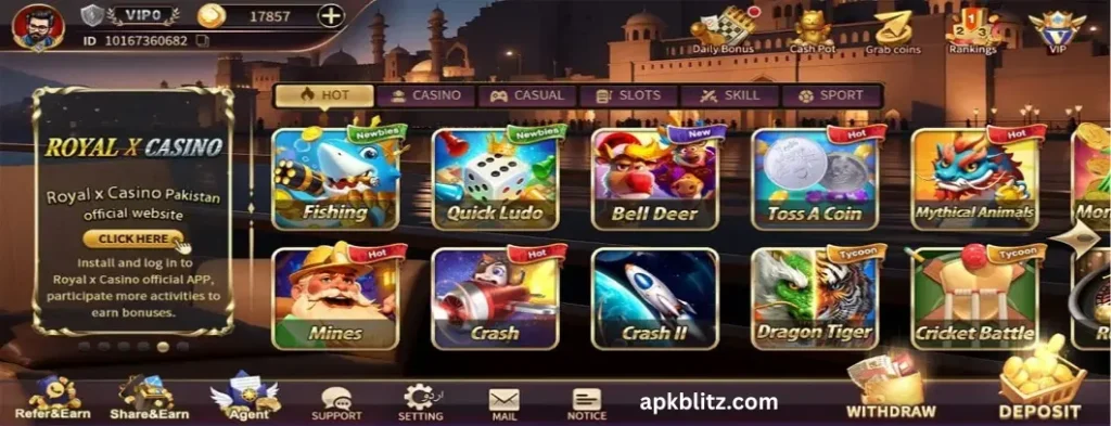 In 2026, online casino games are becoming more popular in Pakistan, and Royal X Casino Game stands out because of its reliability and simple earning system. It supports Pakistani payment methods and offers daily bonuses, which makes it a good choice for users looking for an extra source of income.