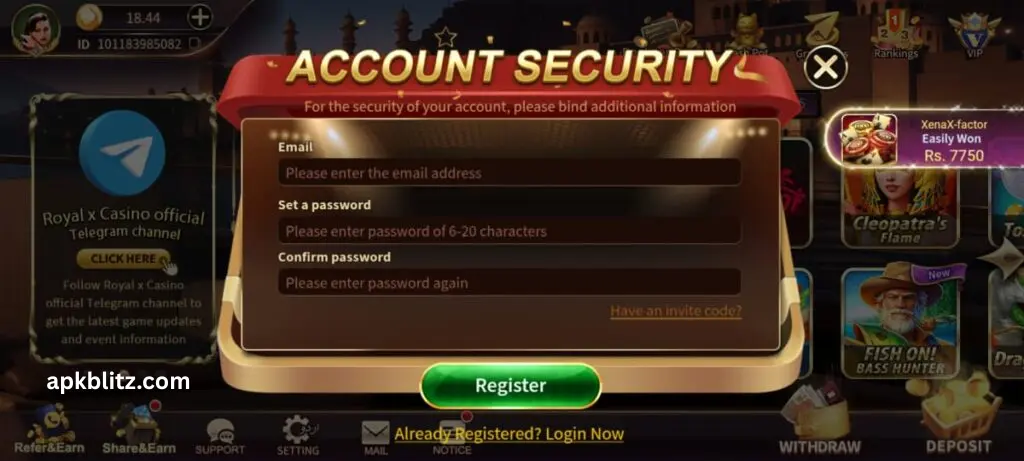 How to Register on Royal X Casino Game